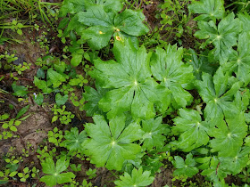 Mayapples grow in clusters, usually from a single root. The flowers are white, and are found under the foliage. They start growing in early spring, and flower in April and May. The fruits are harvested in the summer, depending on where you are located. The leaves remind me of Tree Stars from the first Land Before Time movie.